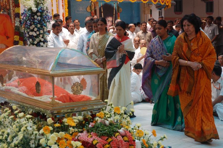 Devotees including State, Central ministers, Politicians, Celebrities paying their last respect to the body of Sri Sathya Sai Baba at the Ashram in Puttaparthi on Monday.