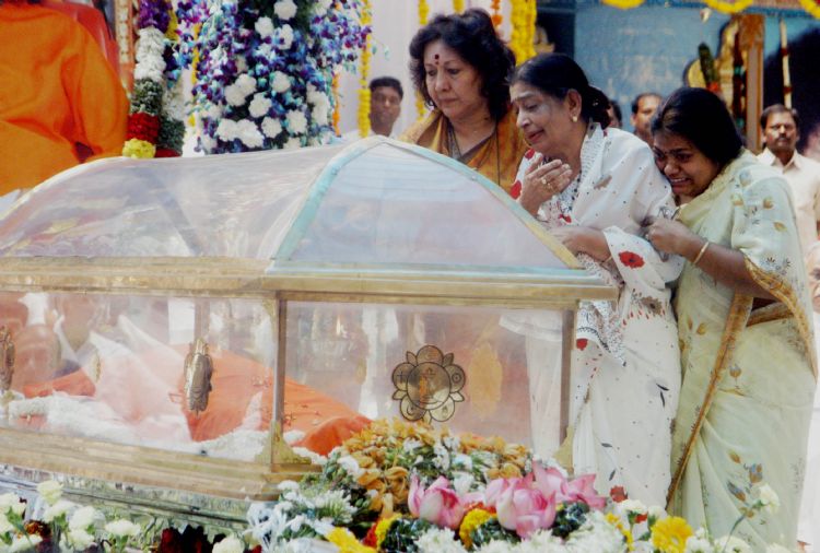 Devotees including State, Central ministers, Politicians, Celebrities paying their last respect to the body of Sri Sathya Sai Baba at the Ashram in Puttaparthi on Monday.
