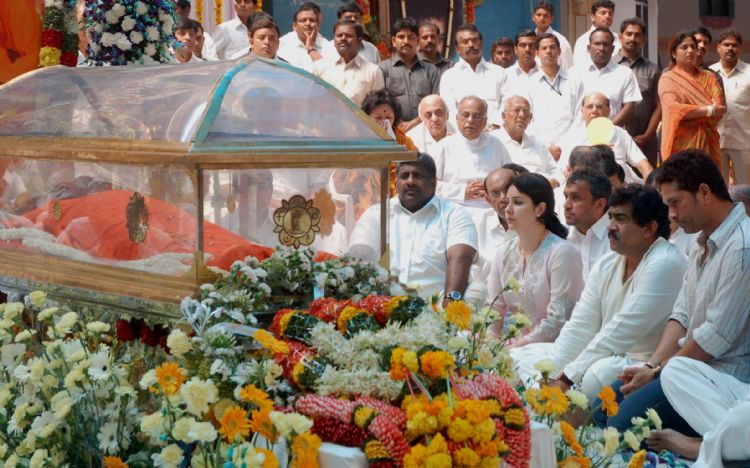 Devotees including State, Central ministers, Politicians, Celebrities paying their last respect to the body of Sri Sathya Sai Baba at the Ashram in Puttaparthi on Monday.