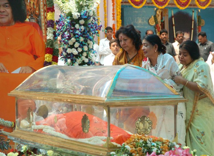 Devotees including State, Central ministers, Politicians, Celebrities paying their last respect to the body of Sri Sathya Sai Baba at the Ashram in Puttaparthi on Monday.