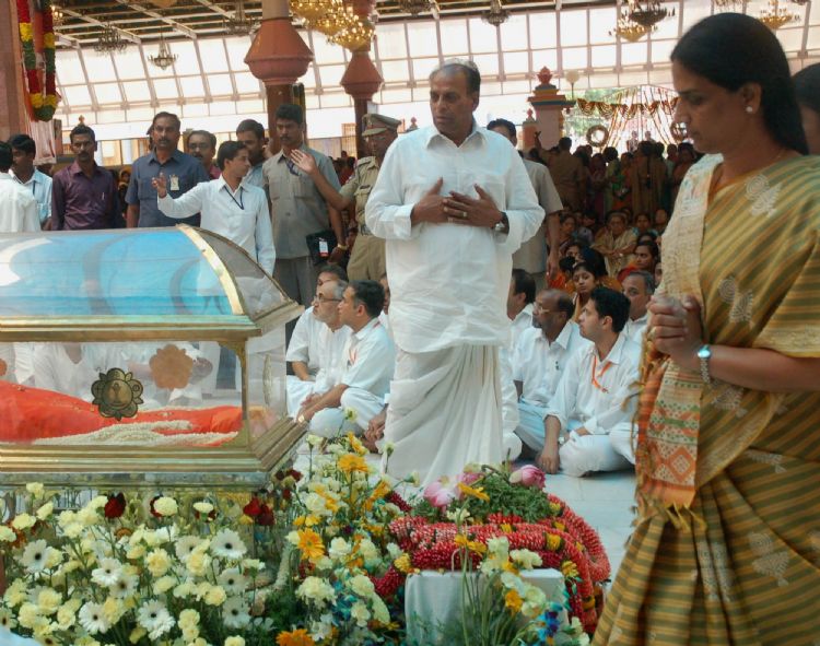 Devotees including State, Central ministers, Politicians, Celebrities paying their last respect to the body of Sri Sathya Sai Baba at the Ashram in Puttaparthi on Monday.