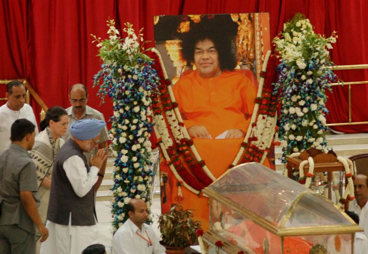 Prime Minister Manmohan Singh and Congress chief Sonia Gandhi on Tuesday join scores of devotess in paying their last respect to Sri Sathya Sai Baba. Sai Baba would be buried in the Sai Kulwanth Hall between 9 and 9.30 am tomorrow.