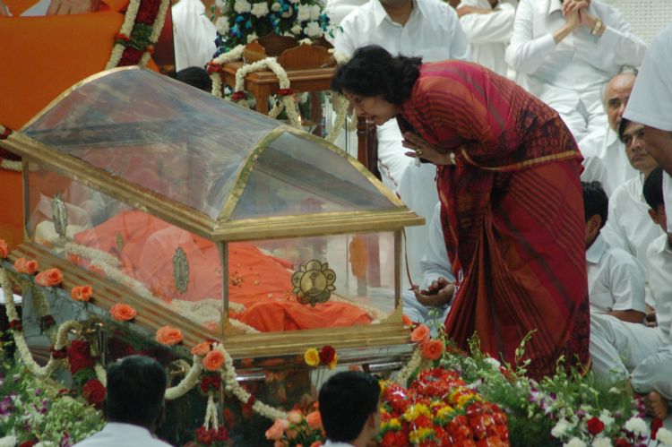 Prime Minister Manmohan Singh and Congress chief Sonia Gandhi on Tuesday join scores of devotess in paying their last respect to Sri Sathya Sai Baba. Sai Baba would be buried in the Sai Kulwanth Hall between 9 and 9.30 am tomorrow.