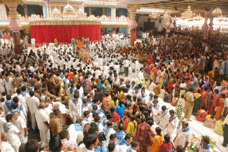 Prime Minister Manmohan Singh and Congress chief Sonia Gandhi on Tuesday join scores of devotess in paying their last respect to Sri Sathya Sai Baba. Sai Baba would be buried in the Sai Kulwanth Hall between 9 and 9.30 am tomorrow.