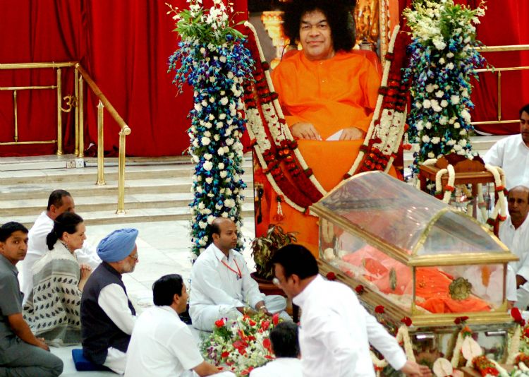 Prime Minister Manmohan Singh and Congress chief Sonia Gandhi on Tuesday join scores of devotess in paying their last respect to Sri Sathya Sai Baba. Sai Baba would be buried in the Sai Kulwanth Hall between 9 and 9.30 am tomorrow.