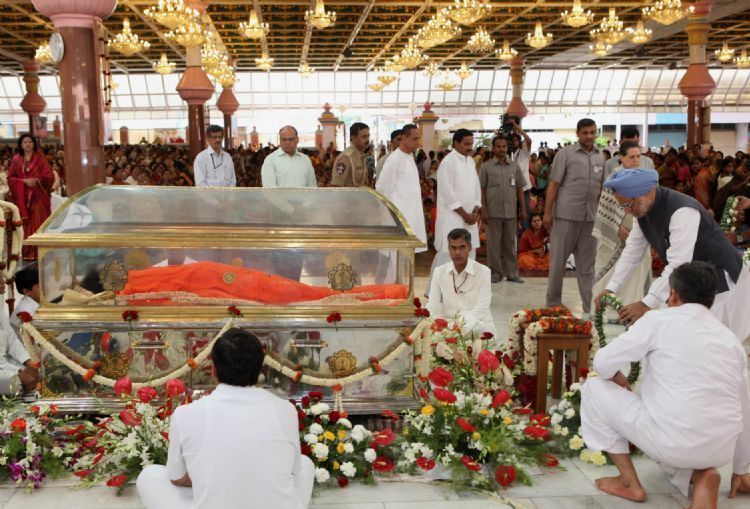 Prime Minister Manmohan Singh and Congress chief Sonia Gandhi on Tuesday join scores of devotess in paying their last respect to Sri Sathya Sai Baba. Sai Baba would be buried in the Sai Kulwanth Hall between 9 and 9.30 am tomorrow.