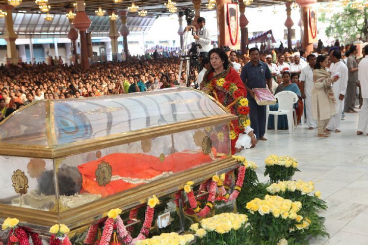 The mortal remains of Sathya Sai Baba were buried at Sai Kulwant Hall in Prashanti Nilayam in Puttaparthi on Wednesday morning. The last rites were performed by his nephew R.J. Ratnakar in accordance with vedic customs following full police honours.