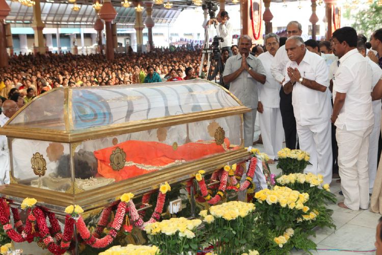 The mortal remains of Sathya Sai Baba were buried at Sai Kulwant Hall in Prashanti Nilayam in Puttaparthi on Wednesday morning. The last rites were performed by his nephew R.J. Ratnakar in accordance with vedic customs following full police honours.