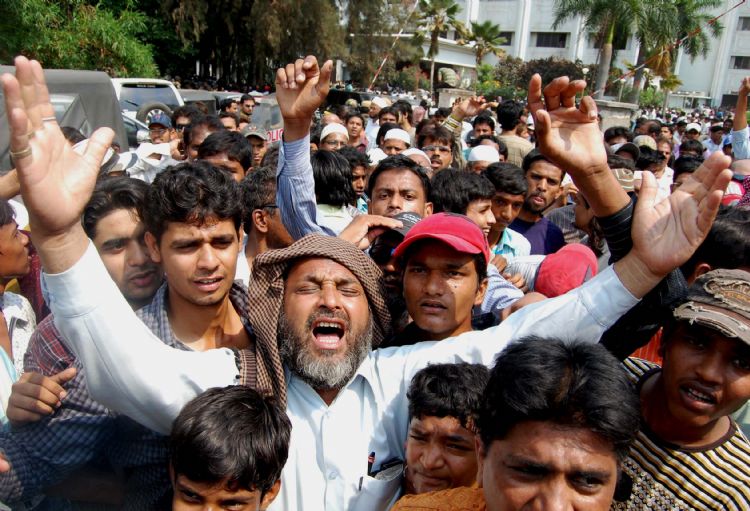 Roads in the Old City become deserted after shopkeepers down their shutters following the attack on MIM MLA Akbaruddin Owaisi in Hyderabad on Saturday. Anxious crowds gather in front of the Owaisi Hospital at Santhoshnagar waiting to know the condition of their leader who is recuperating following the attack. Police moved swiftly and prevented any untoward incidents post attacks. INN Photos.