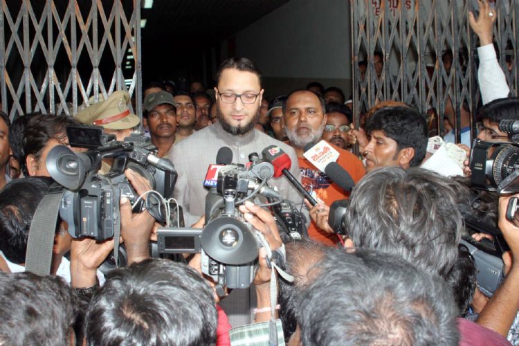 MIM president, MP Asaduddin Owaisi speaking to media persons at Owaisi Hospital on Saturday. INN Photos
