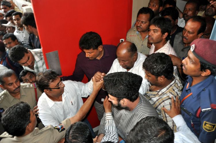 Police arrest Mohammed Pahelwan, the prime accused in the attack on the life of MIM MLA Akbaruddin Owaisi at Yashoda Hospital at Malakpet in Hyderabad on Saturday. Majlis Bachao leaders Amjedullah Khan Khalid, Farhat Khan and others are also seen. INN Photos