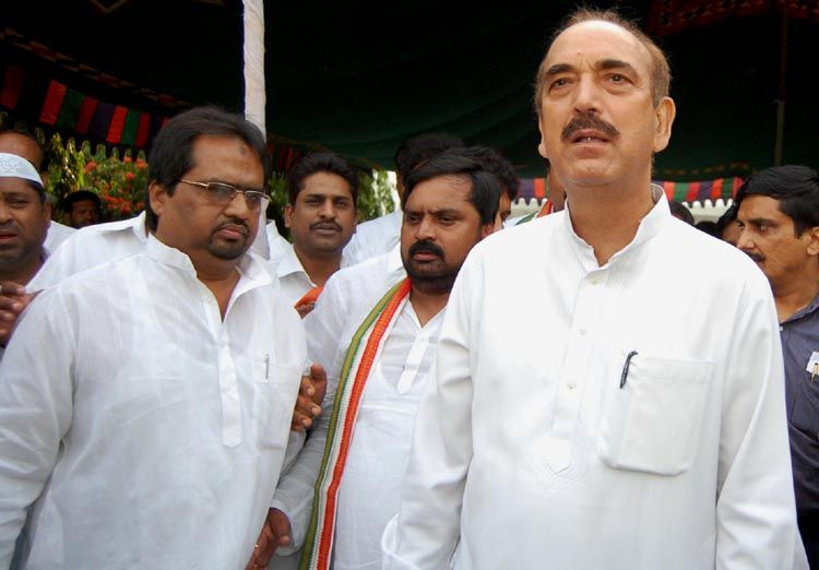 Congress In-Charge of Andhra Pradesh Affairs Ghulam Nabi Azad meets party leaders at the Lake View Guest House in Hyderabad on Monday. INN Photos