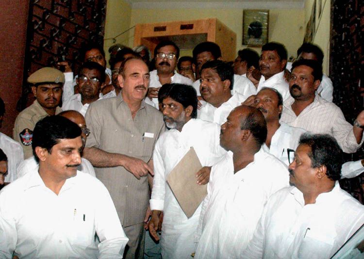 Congress In-Charge for Andhra Pradesh Affairs Ghulam Nabi Azad meets party Legislators at party's state headquarters, Gandhi Bhavan in Hyderabad on Tuesday. INN Photos