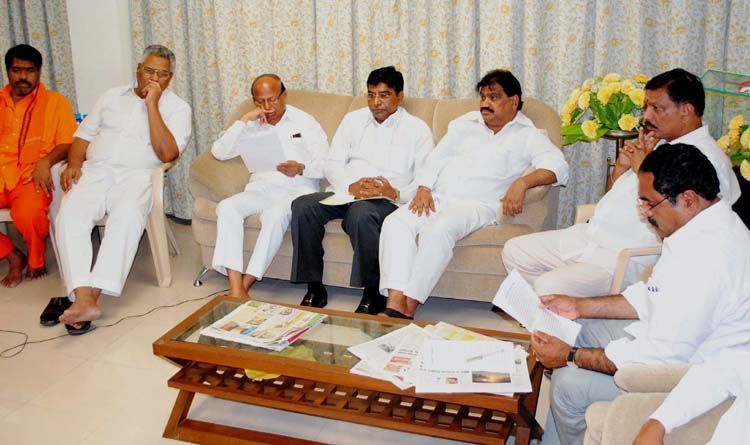 Members of the Telugu Desam Party Telangana Forum at a crucial meeting at the NTR Trust Bhavan in Hyderabad on Monday. The TDP Telangana Forum unanimously recommended the suspension of its former convenor Nagam Janardhan Reddy for his alleged anti-party activities. INN photos