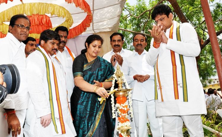 Union Minister of State for HRD D Purandareswari lighting a lamp during the inauguration of Kendriya Vidyalaya at Mahila Pranganam in Karimangar on Thursday .