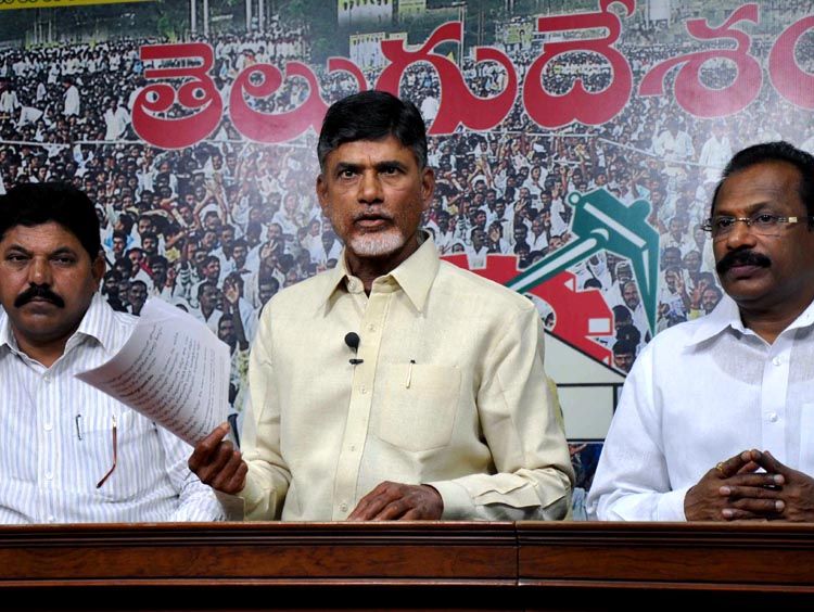 Telugu Desam Party president N Chandrababu Naidu addresses media persons at the NTR trust Bhavan in Hyderabad on Thursday. INN Photos