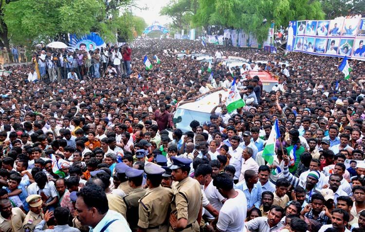 YSR Congress party president YS Jaganmohan Reddy leading a dharna as part of Sagu Poru infront of collectorate in Chittor on Monday.