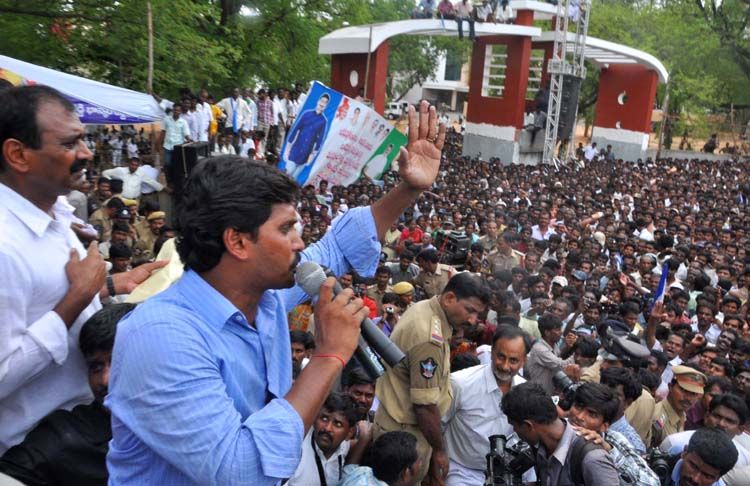 YSR Congress party president YS Jaganmohan Reddy leading a dharna as part of Sagu Poru infront of collectorate in Chittor on Monday.