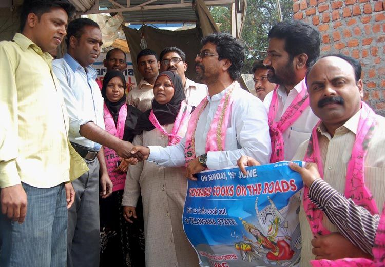 TRS leaders in the old city invite shopkeepers to participate in the Vanta Varpu protest programme in Hyderabad on Saturday. INN photos