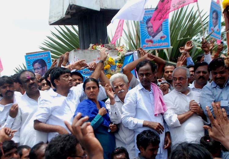 TRS chief K.Chandrasekhara Rao, Revoultionary poet Vara Vara Rao, TPJAC convenor Prof.Kodandaram joined the final procession of Dr.Jayashakar in Waranagal on Wednesday.