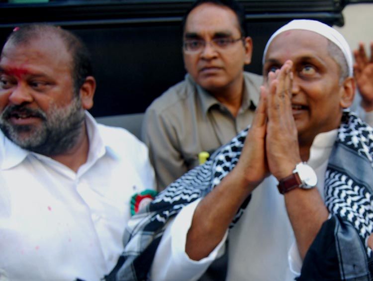Congress workers of the old city welcome Chief Minister N Kiran Kumar Reddy to a rally at Gosha Mahal in Hyderabad on Thursday. The rally was taken out from Gosha Mahal to Mangalhat. INN Photos