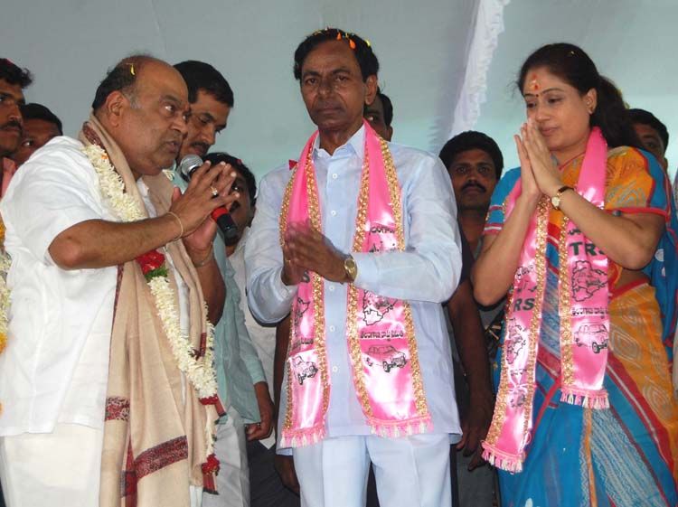 TRS chief KCR along with party secretary general Vijayasanthi visits the ‘Ekta Deekhsa’ camp of suspended TDP leader Nagam Janardhan Reddy at Indira Park in Hyderabad on Monday. Mr Nagam is on a 48-hour hunger fast to unite all separate statehood protagonists on one platform to further strengthen the separate Telangana statehood movement. INN Photos