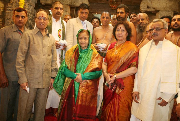 President Smt Prathiba Patil accompanied by her husband Dr. Devisingh Shekhawat and family members had darshan of Goddess Padmavathi in Tiruchanur near Tirupati.