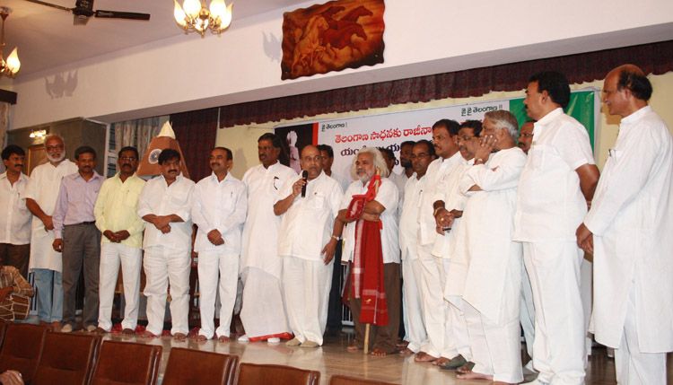 Telangana Praja Front president Gaddar light a candle for each of the Legislators who resigned for the cause of separate Telangana statehood agitation at Madina Education Centre in Hyderabad on Friday where the Balladeer hosted a tea party for them. INN Photos