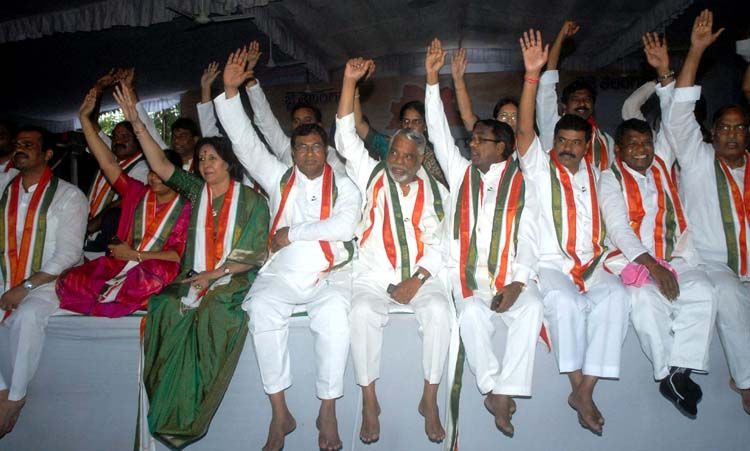 Congress Legislators and MPs launch their mass 48-hour hunger fast at Indira Park in Hyderabad on Wednesday, demanding a decision on the separate Telangana statehood demand. INN Photos