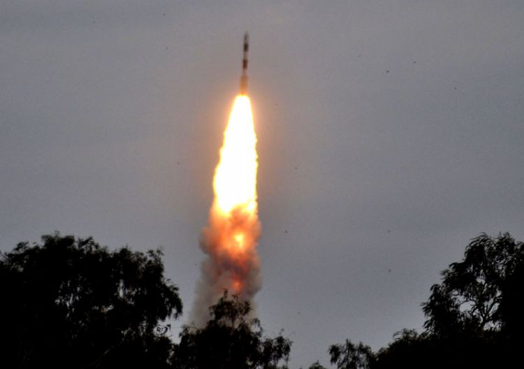 PSLV C-17 carrying the GSAT-12 satellite takes off during its launch from the Sathish Dhawan Space Centre in Srihakota on Friday.