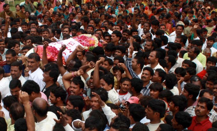 The mortal remains of Yadireddy, who committed suicide for the cause of Telangana state, were consigned to flames in the presence of thousand of separate Telangana statehood demand supporters at Pedamangalaram village in Moinabad, Rangareddy district on Friday.
