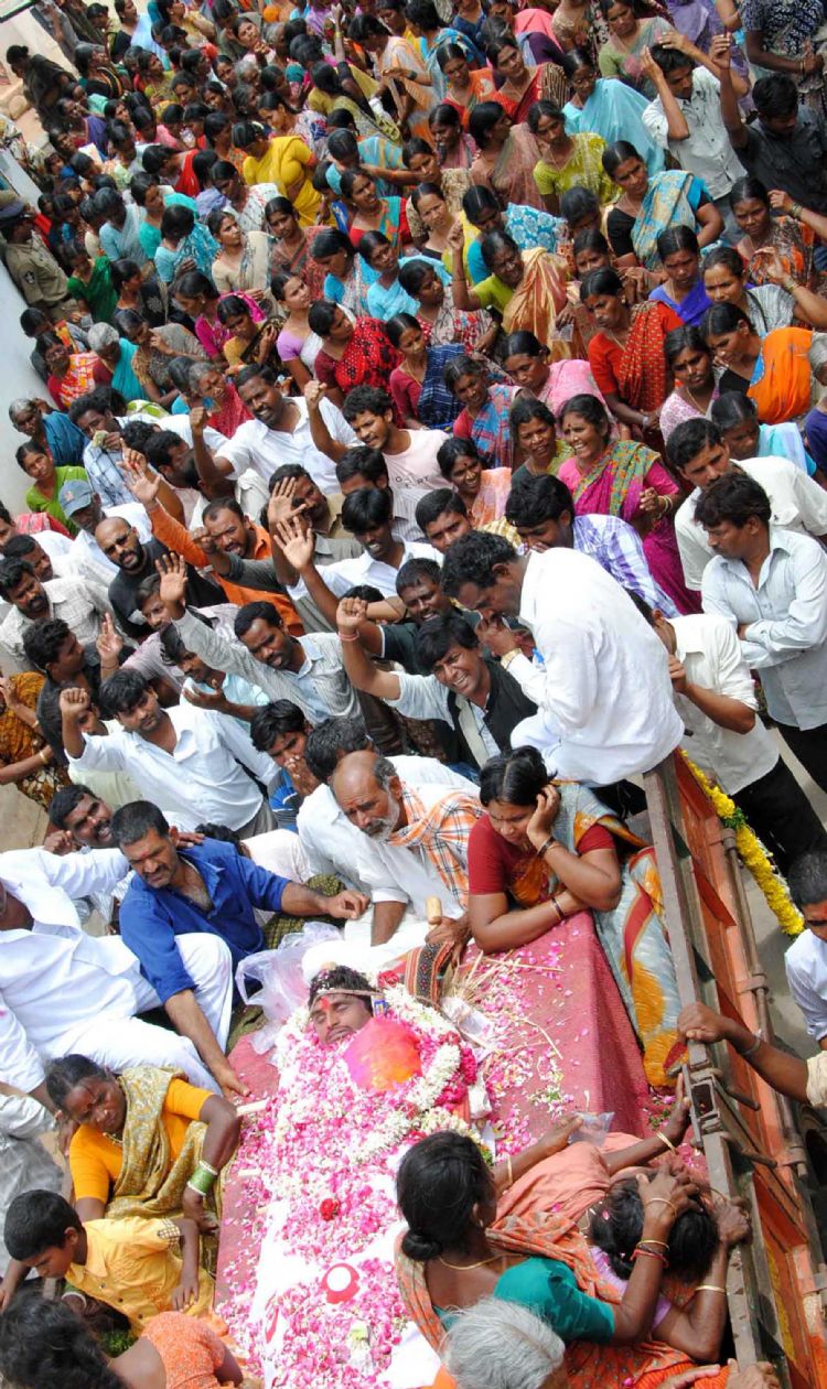 The mortal remains of Yadireddy, who committed suicide for the cause of Telangana state, were consigned to flames in the presence of thousand of separate Telangana statehood demand supporters at Pedamangalaram village in Moinabad, Rangareddy district on Friday.