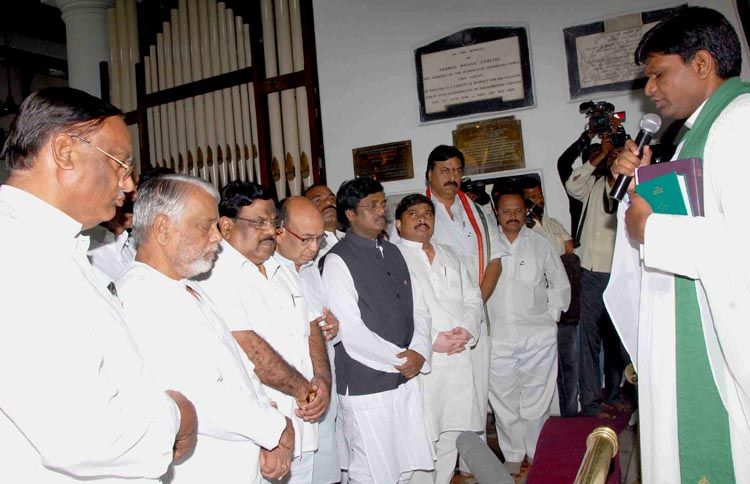 Telangana Congress leaders participating in a prayer for the good health of UPA chief Sonia Gandhi and formation of Telangana in Secunderabad on Sunday.