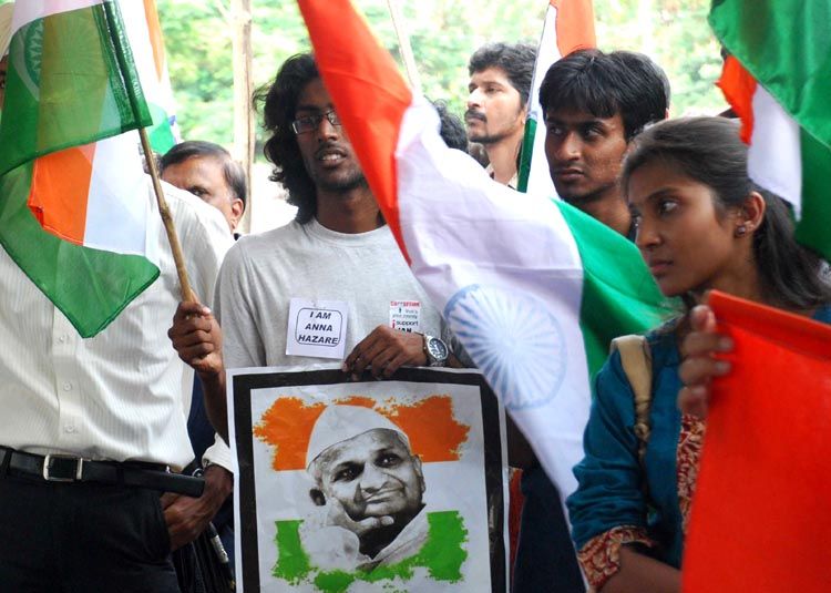 Supporters stage in protest to the arrest of Anna Hazare and took out rally against corruption at NTR stadium near Indira park, Hyderabad- INN Photos