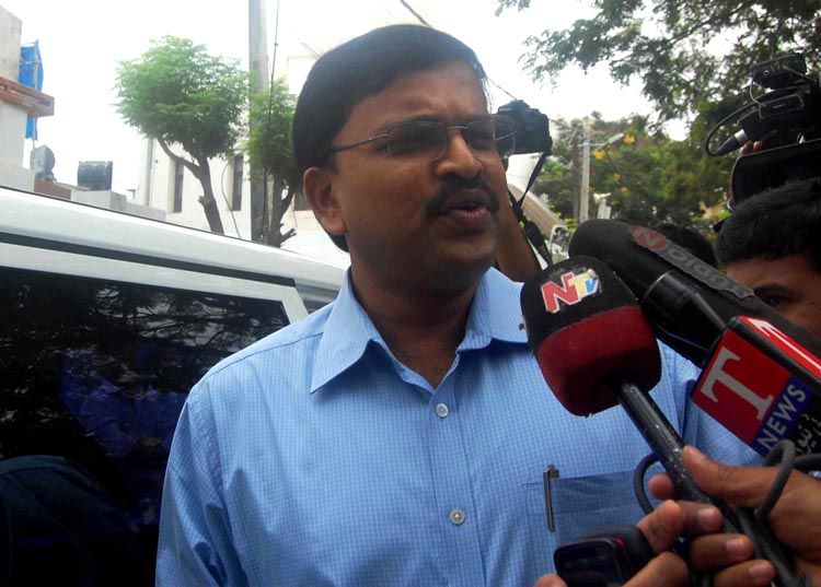 A CBI officer speaking to media persons before launching search and seizure operations at YSR Congress part president YS Jaganmohan Reddy's Lotus Pond residence in Jubilee Hills on Thursday - INN Photos