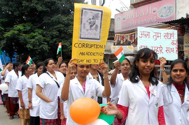 Medicos participating in an anti-corruption rally at Koti in Hyderabad on Thursday - INN Photos
