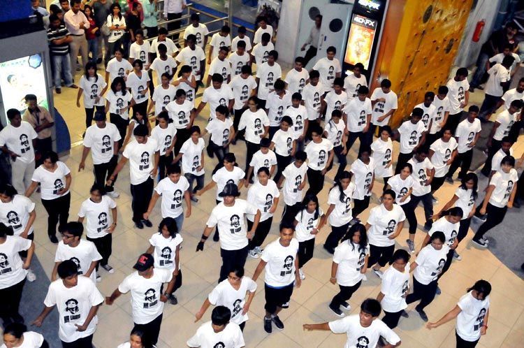 'He Lives' - a dance tribute paid by 150 plus MJ fans on 53rd birthday of King of Pop Micheal Jackson in Prasad's IMAX, Hyderabad.