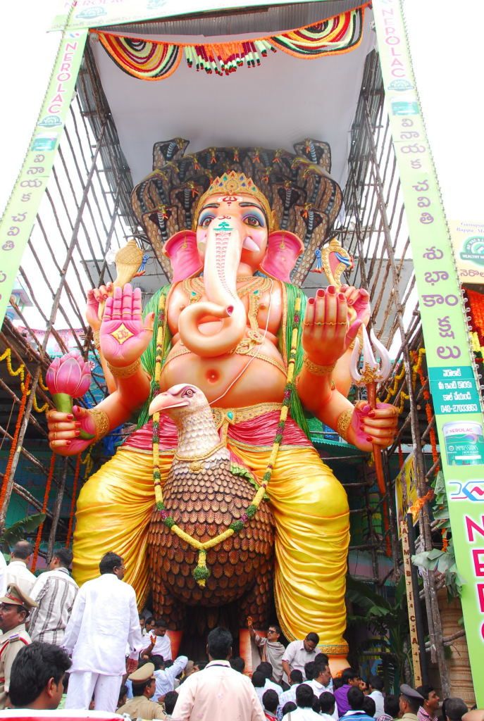 Thousand of devotees thronged at the state’s most popular Ganesh venue, Khairatabad Ganesh to witness the first prayers to their beloved deity on he first day of the festival here on Thursday morning. Governor ESL Narashimhan, along with his wife Vimala Narashimhan, participated in the prathisthapana programme and performed the first special pooja to the deity.