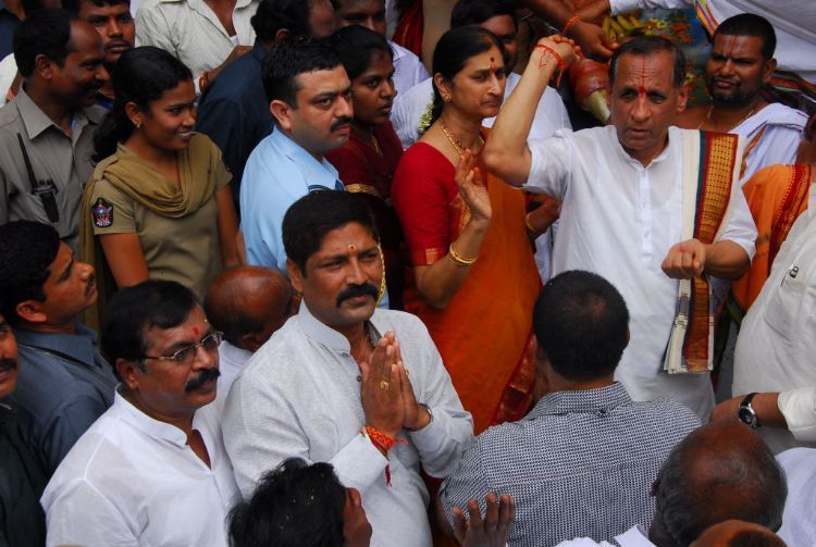 Thousand of devotees thronged at the state’s most popular Ganesh venue, Khairatabad Ganesh to witness the first prayers to their beloved deity on he first day of the festival here on Thursday morning. Governor ESL Narashimhan, along with his wife Vimala Narashimhan, participated in the prathisthapana programme and performed the first special pooja to the deity.