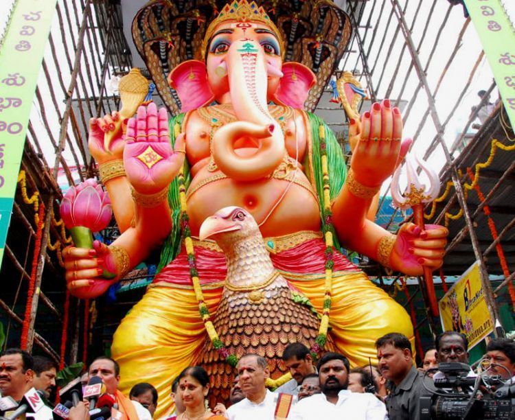 Thousand of devotees thronged at the state’s most popular Ganesh venue, Khairatabad Ganesh to witness the first prayers to their beloved deity on he first day of the festival here on Thursday morning. Governor ESL Narashimhan, along with his wife Vimala Narashimhan, participated in the prathisthapana programme and performed the first special pooja to the deity.