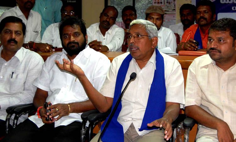 Telangana JAC convener Prof M Kodandaram addressing a gathering at Telangana Non-Gazetted Officers' Association office at Nampally here on Sunday - INN Photos