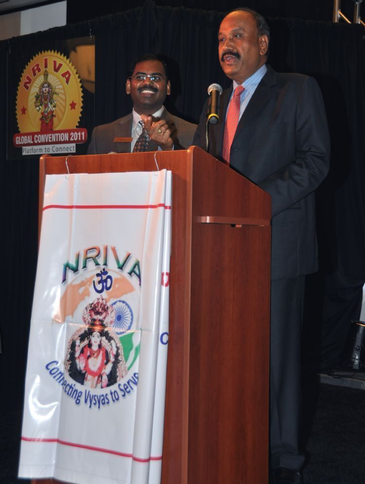 NRIVA Global Convention 2011 held at Hyatt Dulles in Washington D.C. The three day convention, first of its kind, has been attended by dignataries and delegates from various walks of life both from USA and India. The legend of indian industry Grandhi Mallikarjuna Rao of GMR Group has been the star attraction of the event. He presented the keynote address on the second day of convention on Sunday.