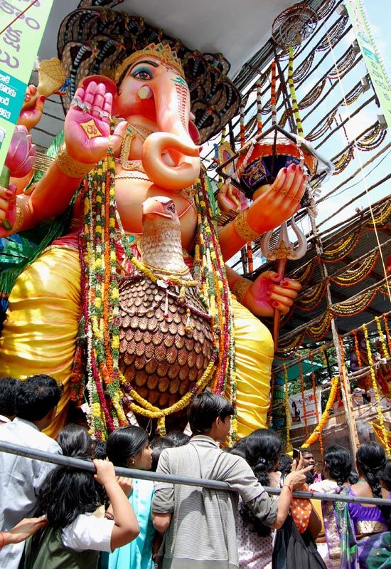 With just three days left for the Nimajjanotsavam of Ganesh, hundreds of devotees gather for the darshan of city's tallest idol of Lord Ganesh at Khairtabad - INN Photos
