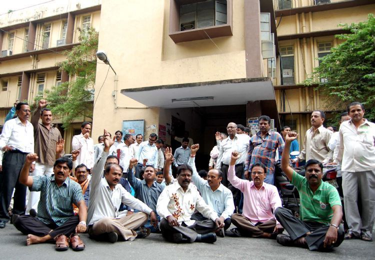 Secretariat Telangana JAC Employees Union staging protest opposite J Block in Secretariat demanding separate Telangana here on Wednesday - INN Photos