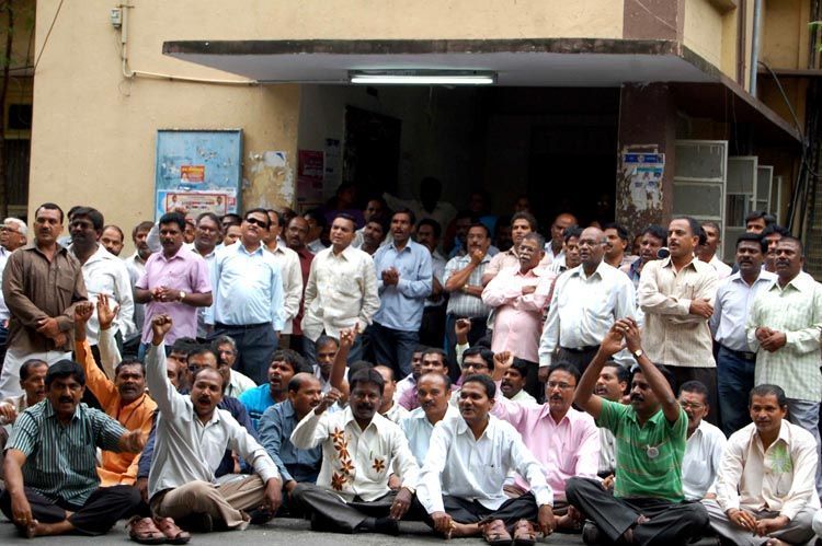 Secretariat Telangana JAC Employees Union staging protest opposite J Block in Secretariat demanding separate Telangana here on Wednesday - INN Photos