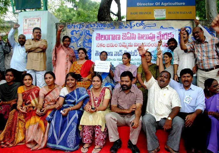 TNGO’s union dharna in front of the Directorate of Agricultural office opposite LB Stadium on Thursday demanding introduction of Telengana Bill in Parliament -- INN Photos