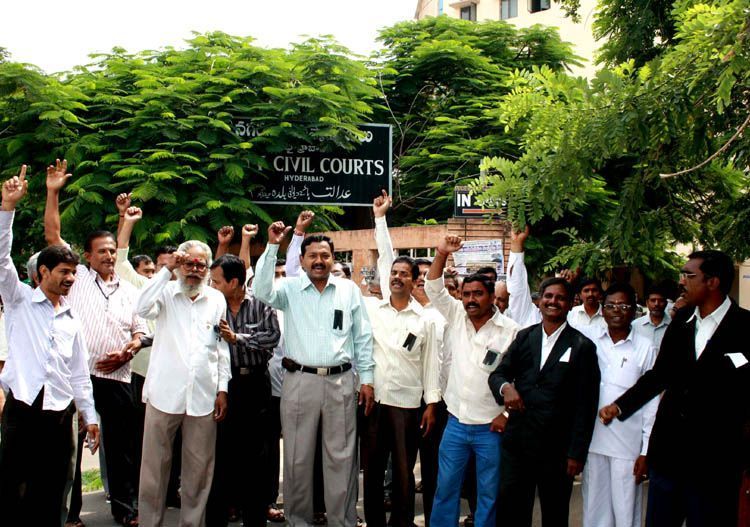 City CivIl Court advocates and employees protesting outside the court at Purani Haveli on Thursday demanding separate Telangana - INN Photos