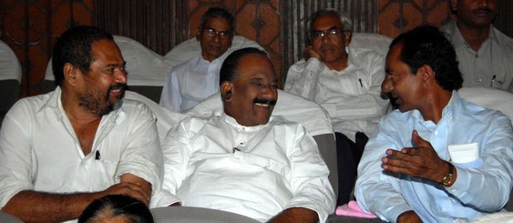 TRS President K.Chandra Sheker Rao watching 'Poru Telangana' film along with family members and party leaders at Usha Mayuri theatre at RTC X Road in Hyderabad on Friday - INN Photos
