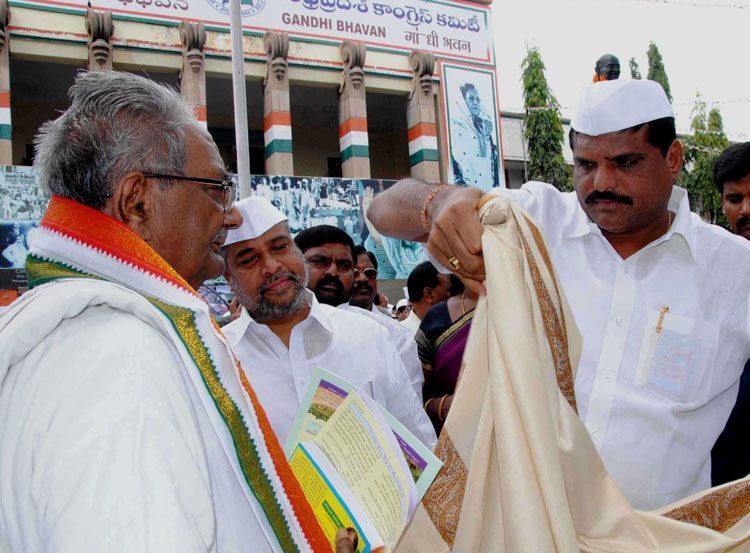 Dy. Chief Minister Damodar Rajanarasimha, APCC president Botsa Satyanarayana felicitating freedom fighters on the occasion of Hyderabad Libration Day at Gandhi Bhavan on Saturday - INN Photos