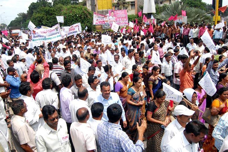 Telangana teachers staged a massive rally supporting general stike for Telangana state in Warangal on Monday.